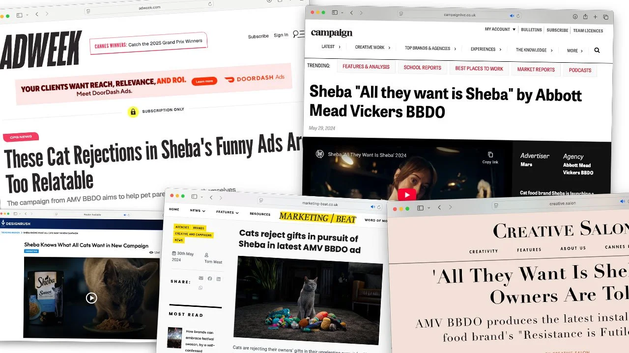 Cat parents will buy anything for their precious furballs. But most gifts are rejected, because All They Want Is Sheba. This was a new global campaign and repositioning for the brand. Hero AV links to a sampling promo where any cat owner can ‘Redeem Yourself’ by exchanging a rejected cat toy for free Sheba. The campaign is supported by a 360 ecosystem with everything from digital OOH, OOH, Tik Tok and Insta ads plus influencer partnerships.